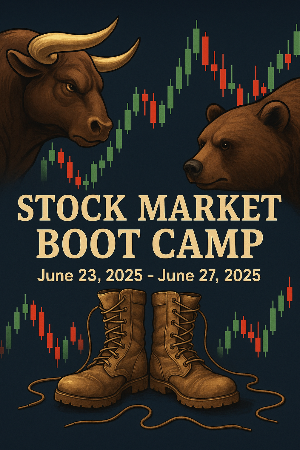 5 Days. 2 hours each day. One Goal - Market Independence! This isn’t just a crash course - it’s a complete mental and market reset. In just five high-impact days, from 6pm EST to 8pm EST, you’ll go from unsure and inconsistent to confident and calculated, in your approach to the stock market. Whether you're a beginner or stuck in the “almost profitable” phase, this boot camp is designed to strip away confusion and replace it with what I call the "Triple C's - Clarity, Confidence, and Control. Each day is structured to unlock a key pillar of profitable trading - from strategy to psychology - and build you into a trader who doesn’t just take trades… but takes gains!